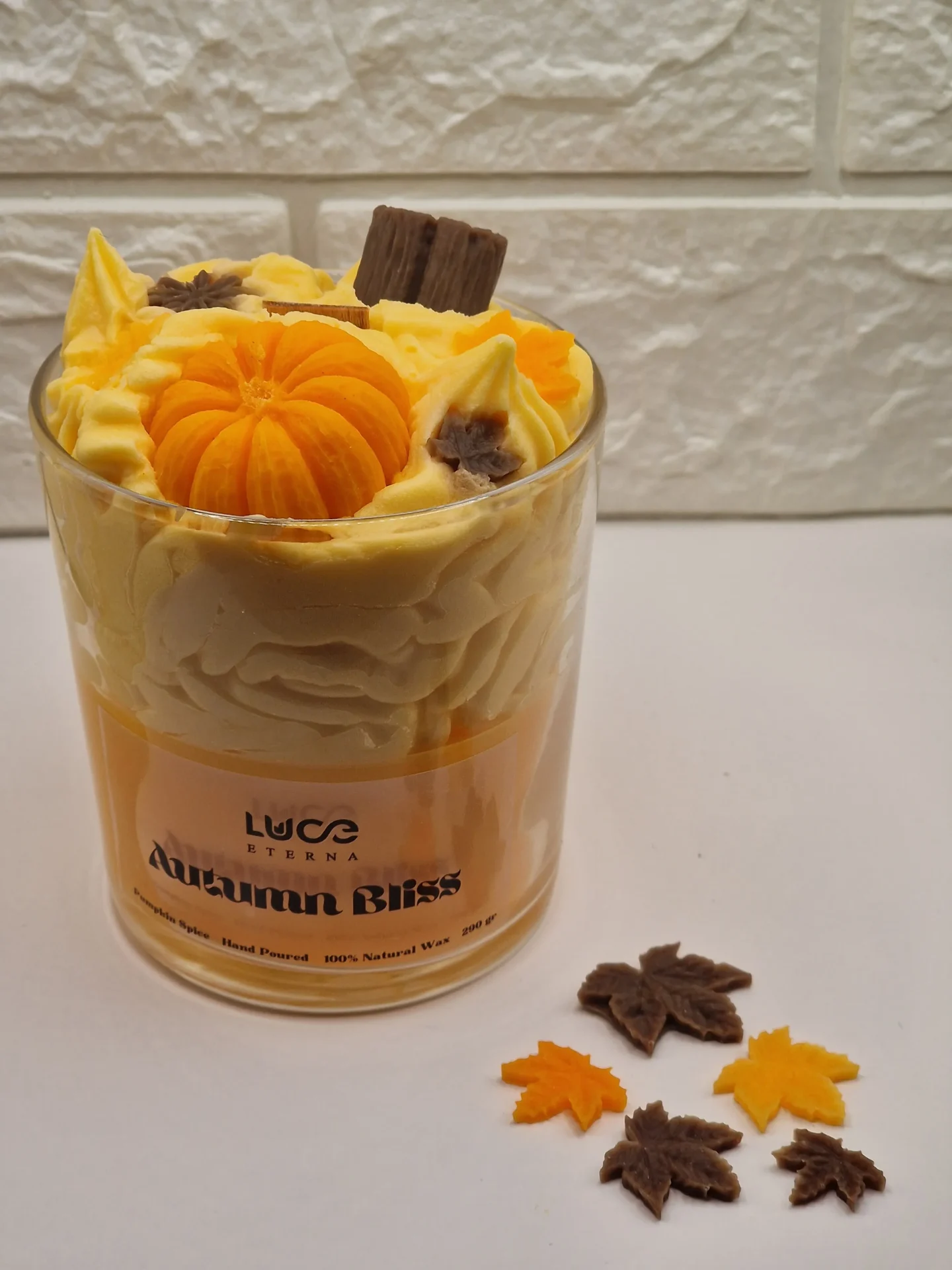 Αφεθείτε στη ζεστή, γλυκιά ατμόσφαιρα του Autumn Bliss, της Luce Eterna. Ένα κερί που γεμίζει τον χώρο με την αίσθηση φθινοπωρινής μαγείας, προσφέροντας θαλπωρή, cozy διάθεση και γλυκιά ζεστασιά που θυμίζει φρεσκοψημένα γλυκίσματα και φθινοπωρινές στιγμές στο σπίτι.