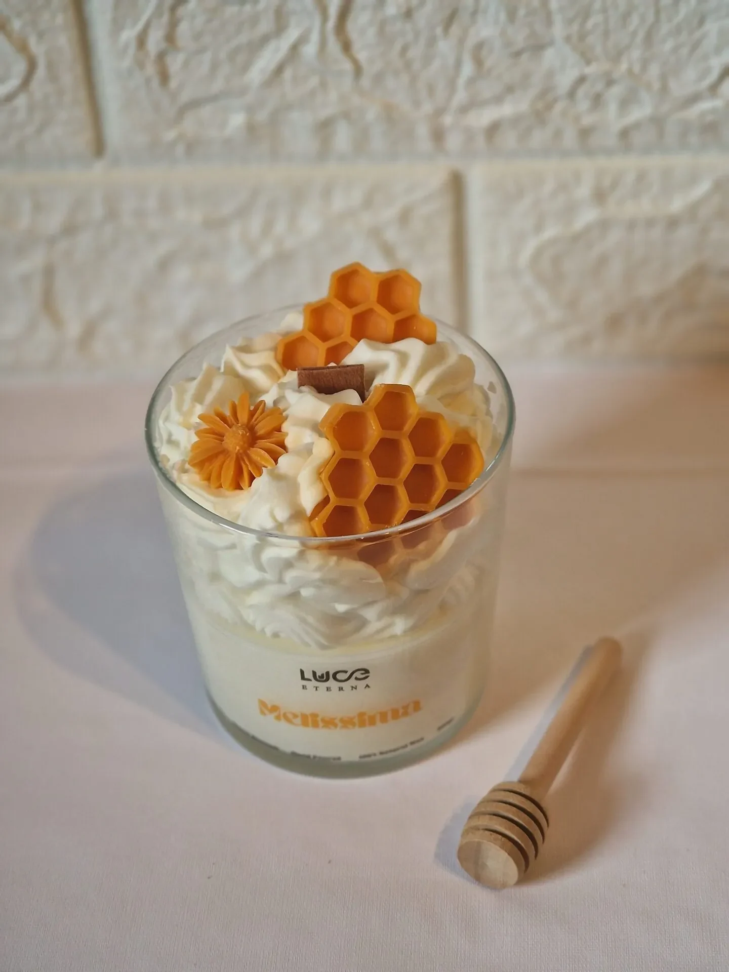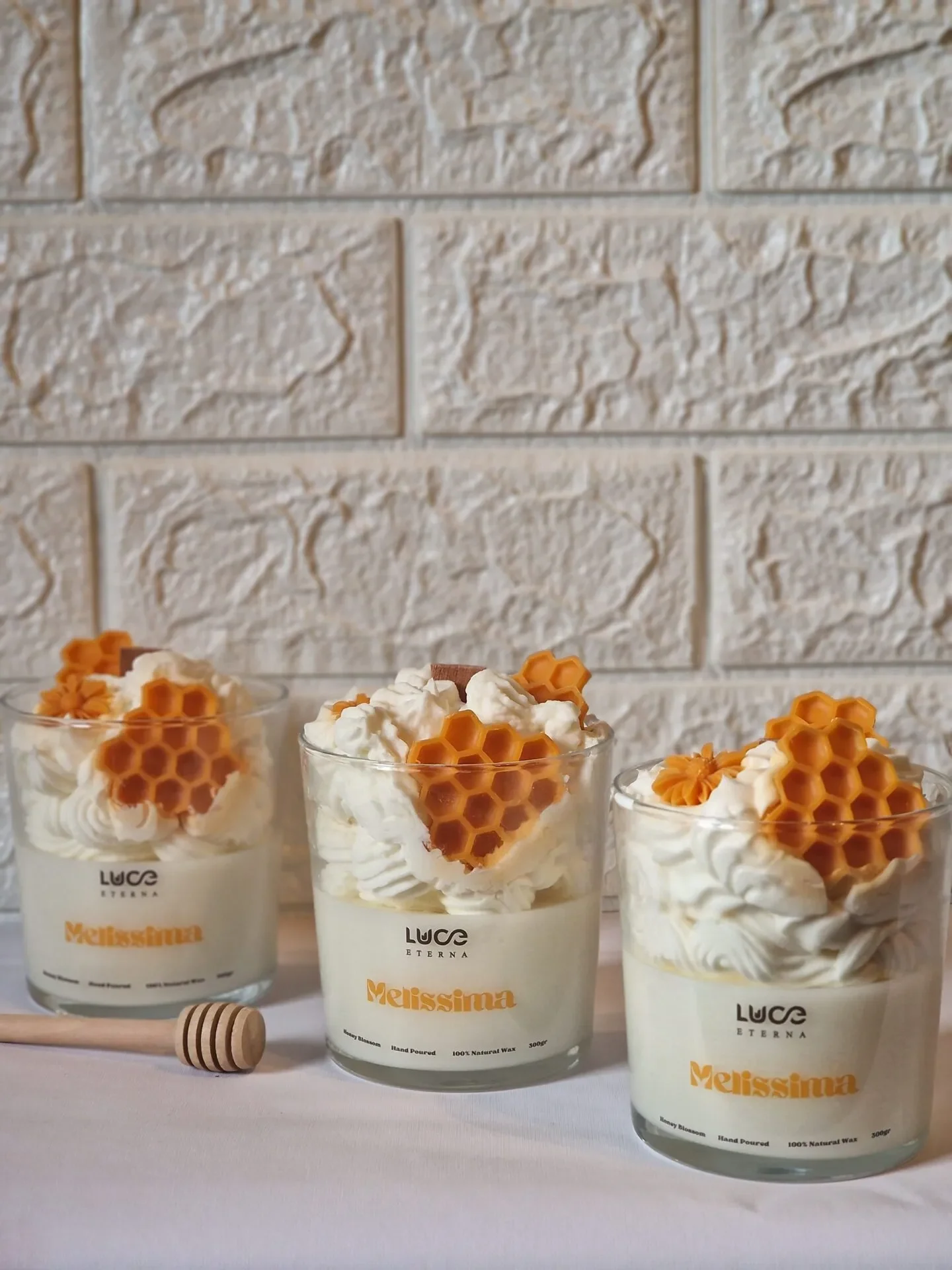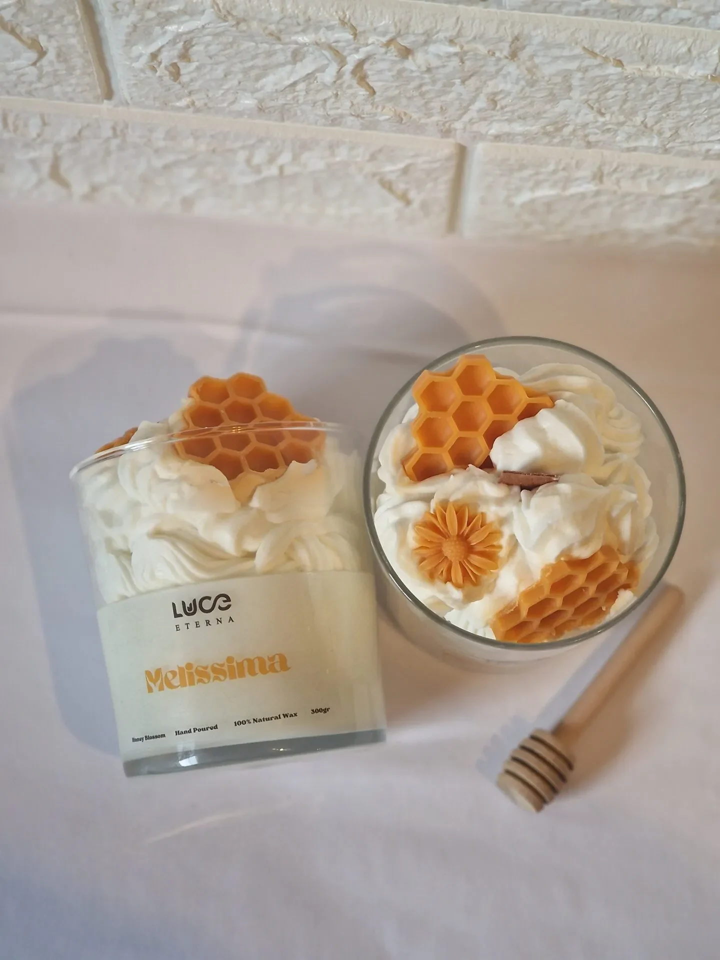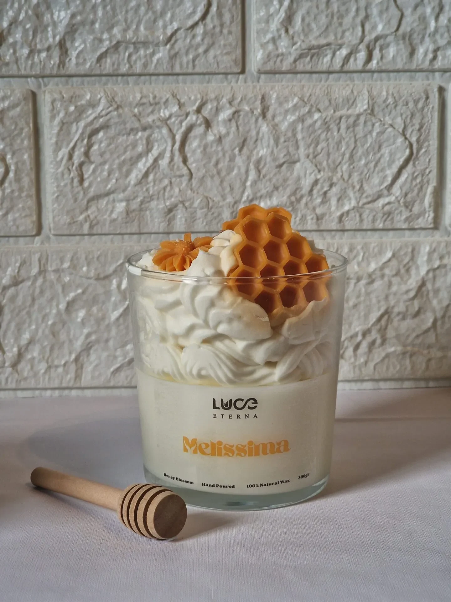 Με ήπια ένταση, το Melissima έχει ένα γλυκό και ζεστό άρωμα που ισορροπεί τέλεια ανάμεσα στη γλυκύτητα του ανθόμελου και τις φρέσκες, λουλουδάτες νότες των φρεσκοκομμένων λουλουδιών. Η αρωματική του σύνθεση δημιουργεί μια αίσθηση ζεστασιάς και άνεσης, ιδανική για να γεμίσει τον χώρο σας με την αίσθηση της ηρεμίας και της γλυκύτητας.