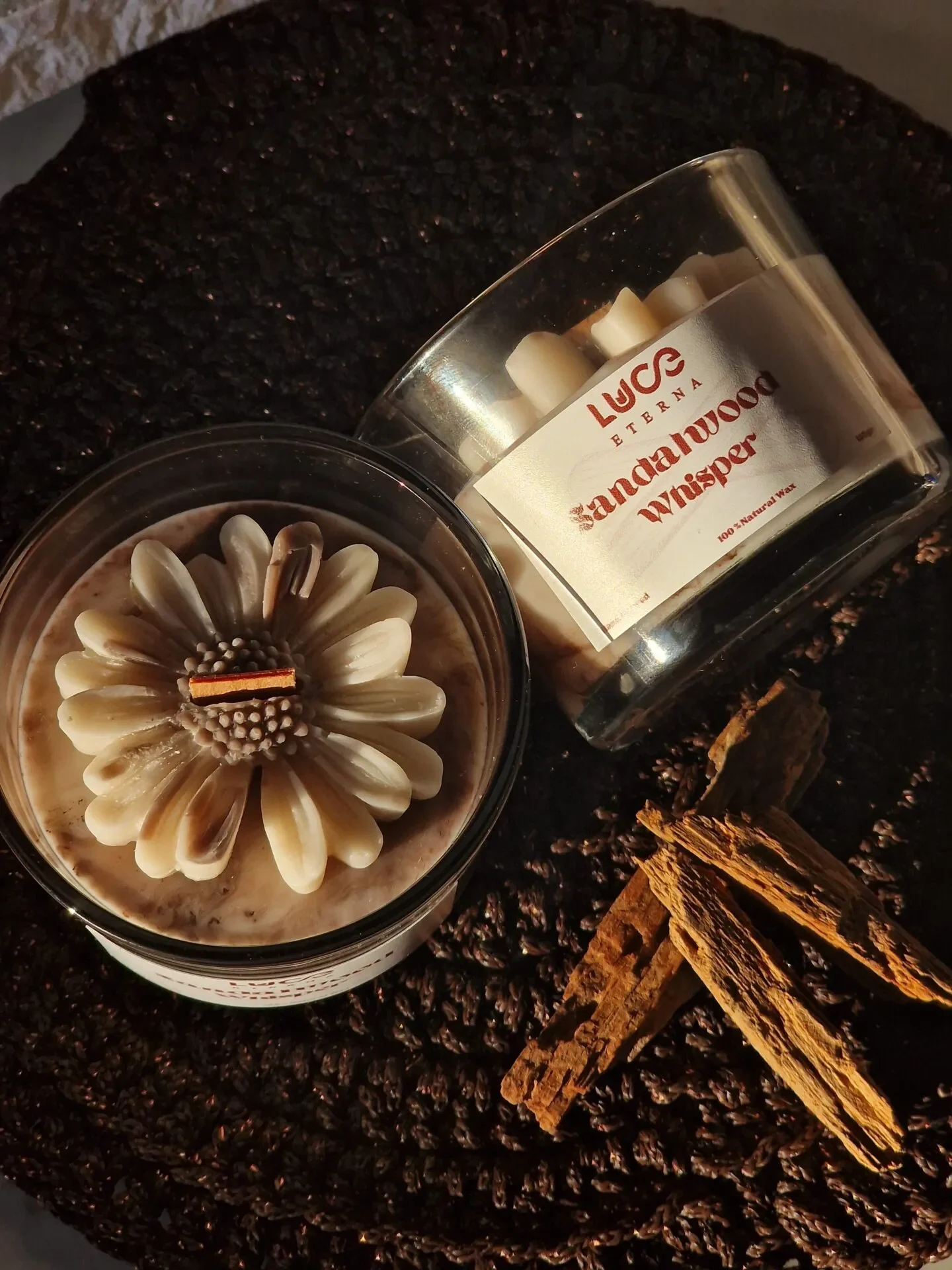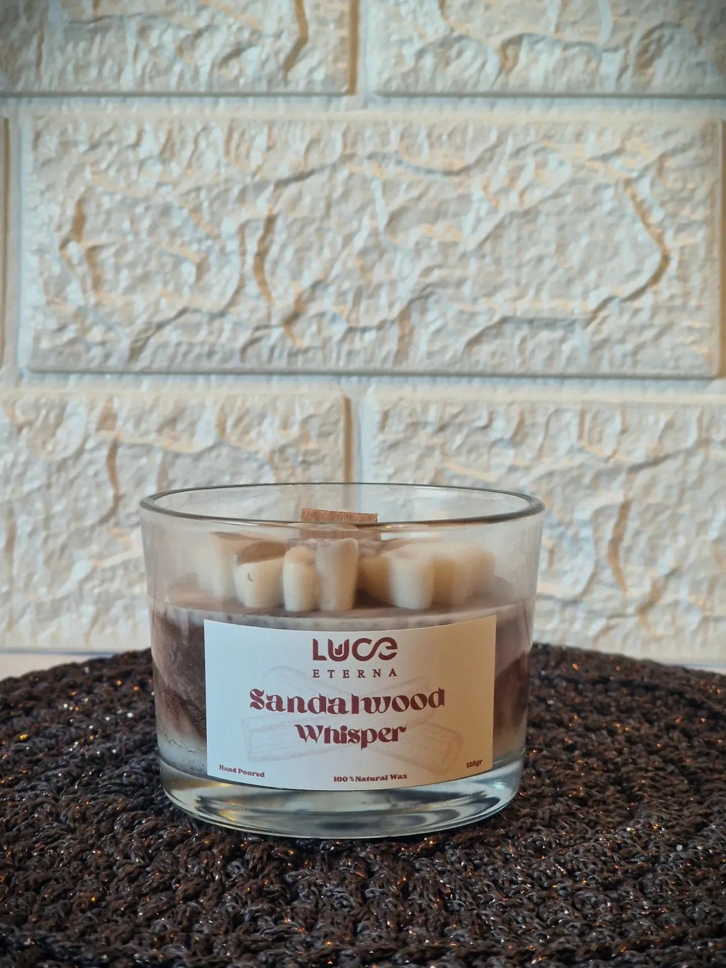 Ανακαλύψτε την καταπραϋντική δύναμη του σανδαλόξυλου με το Sandalwood Whisper της Luce Eterna. Ένα κερί που αποπνέει ζεστασιά, ηρεμία, γείωση και δημιουργεί μια ατμόσφαιρα ηρεμίας και πολυτέλειας.