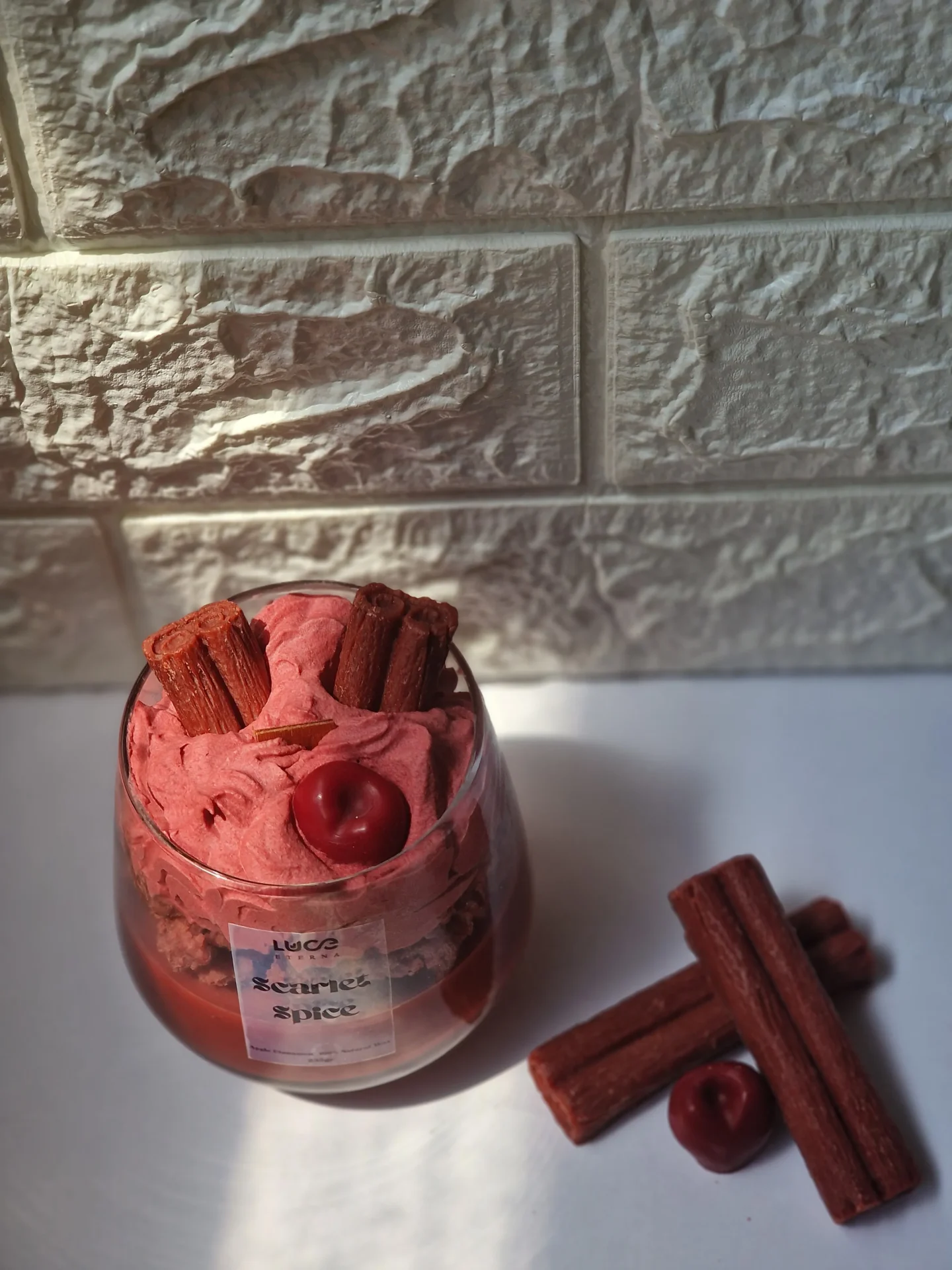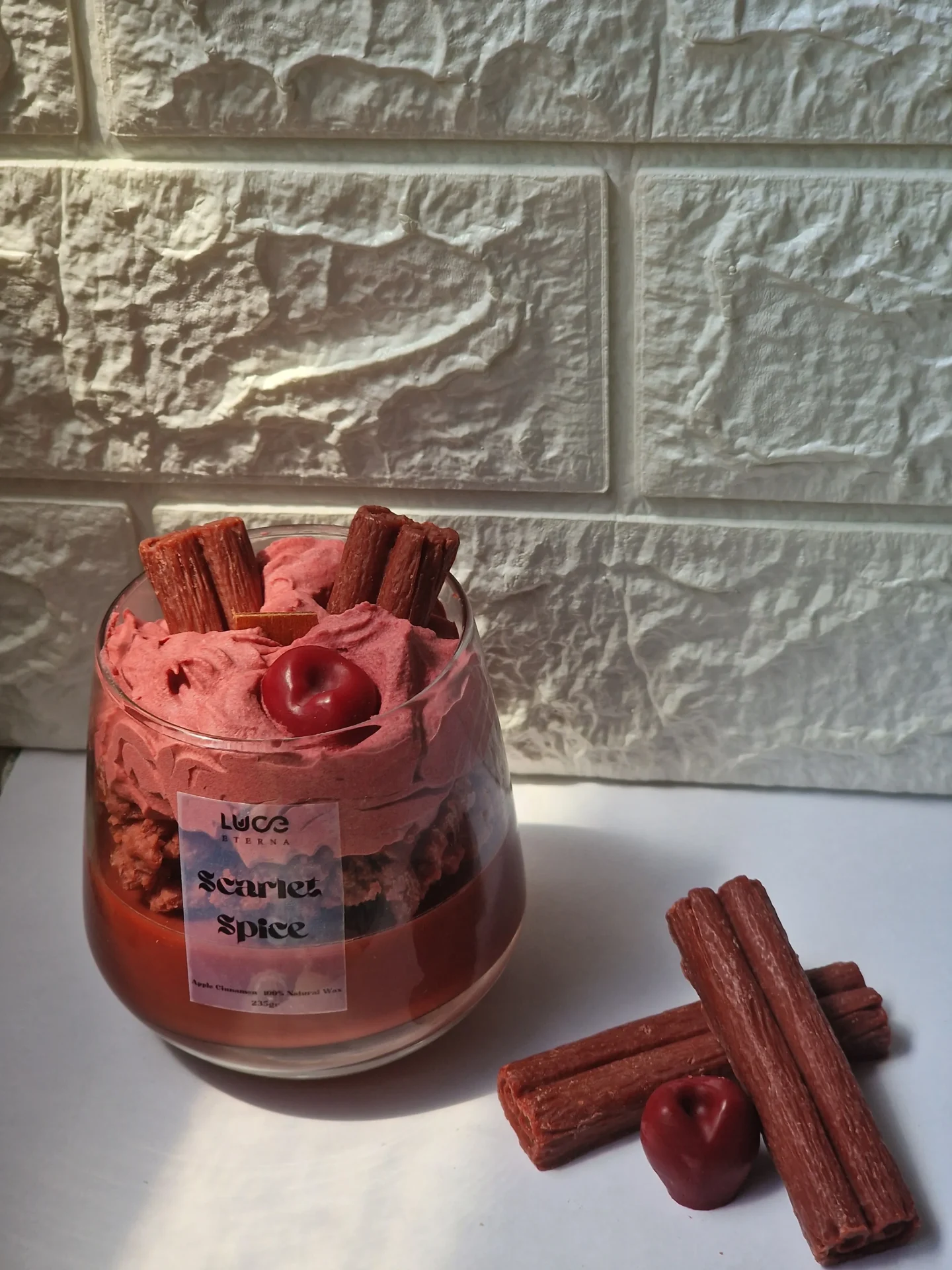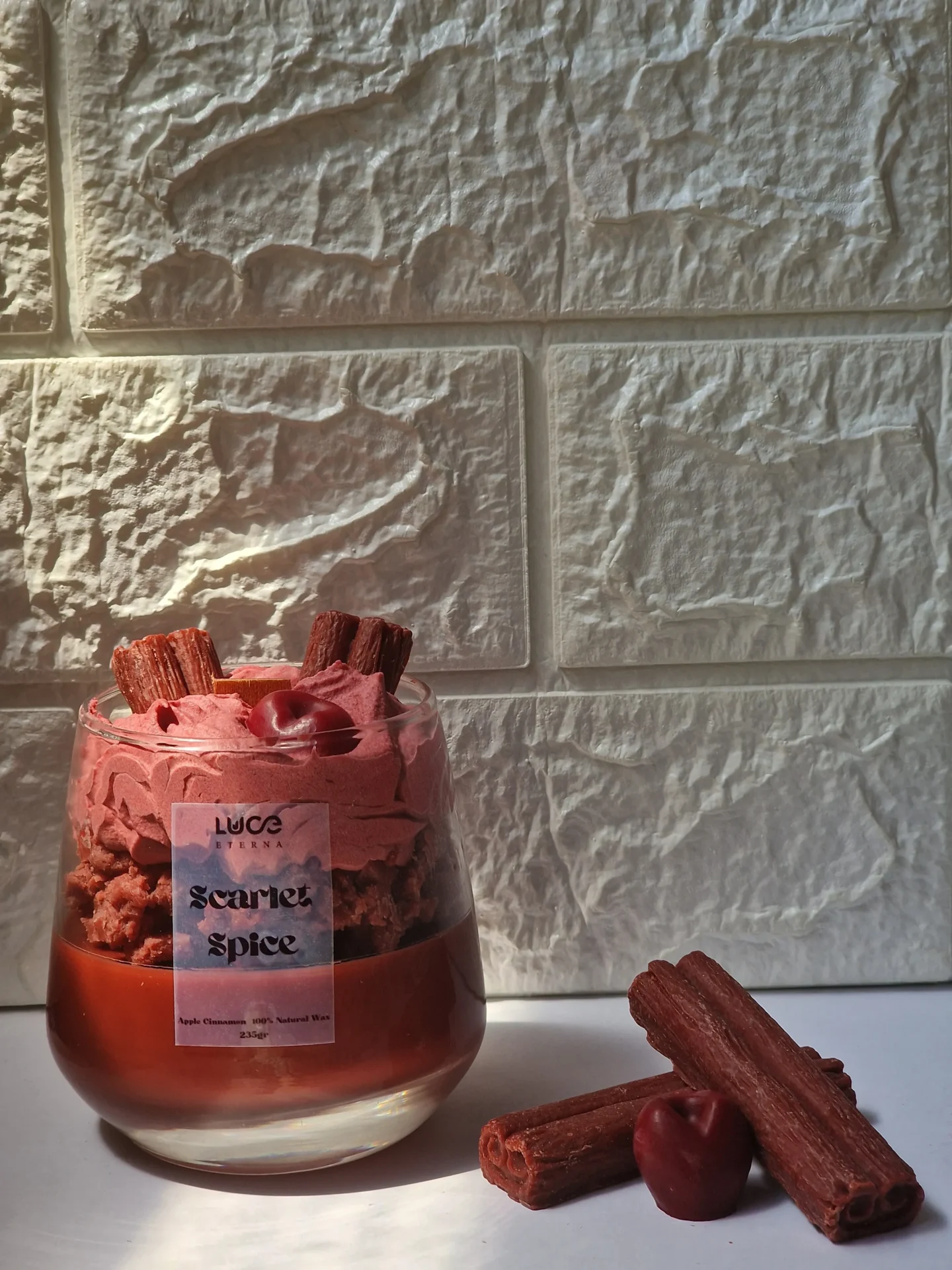 Αφεθείτε στη μαγευτική αρωματική εμπειρία του Scarlet Spice, αυτό το κερί της Luce Eterna συνδυάζει την έντονη γλυκύτητα των ψημένων μήλων με την πικάντικη ζεστασιά της κανέλας και των άλλων μυρωδικών. Αυτή η σύνθεση δημιουργεί μια ατμόσφαιρα ζεστασιάς και ανανέωσης, γεμάτη από γλυκές νότες φθινοπώρου, ιδανικό για να γεμίσετε το χώρο σας με την αίσθηση του σπιτικού καλωσορίσματος και της απόλαυσης.
