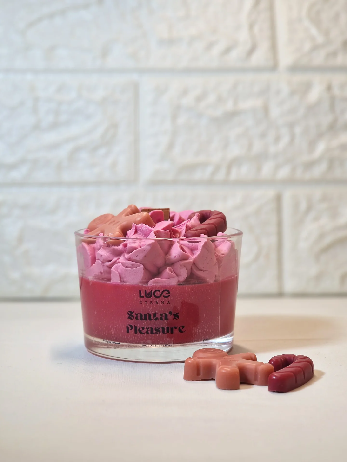 Το αρωματικό κερί Santa’s Pleasure της Luce Eterna είναι ένα απολαυστικό, ζεστό άρωμα που ενώνει τη φρεσκάδα του τζίντζερ με τη γλυκιά αίσθηση του μπισκότου. Εϊναι ένα κερί αφιερωμένο στις πιο λαχταριστές στιγμές των γιορτών.