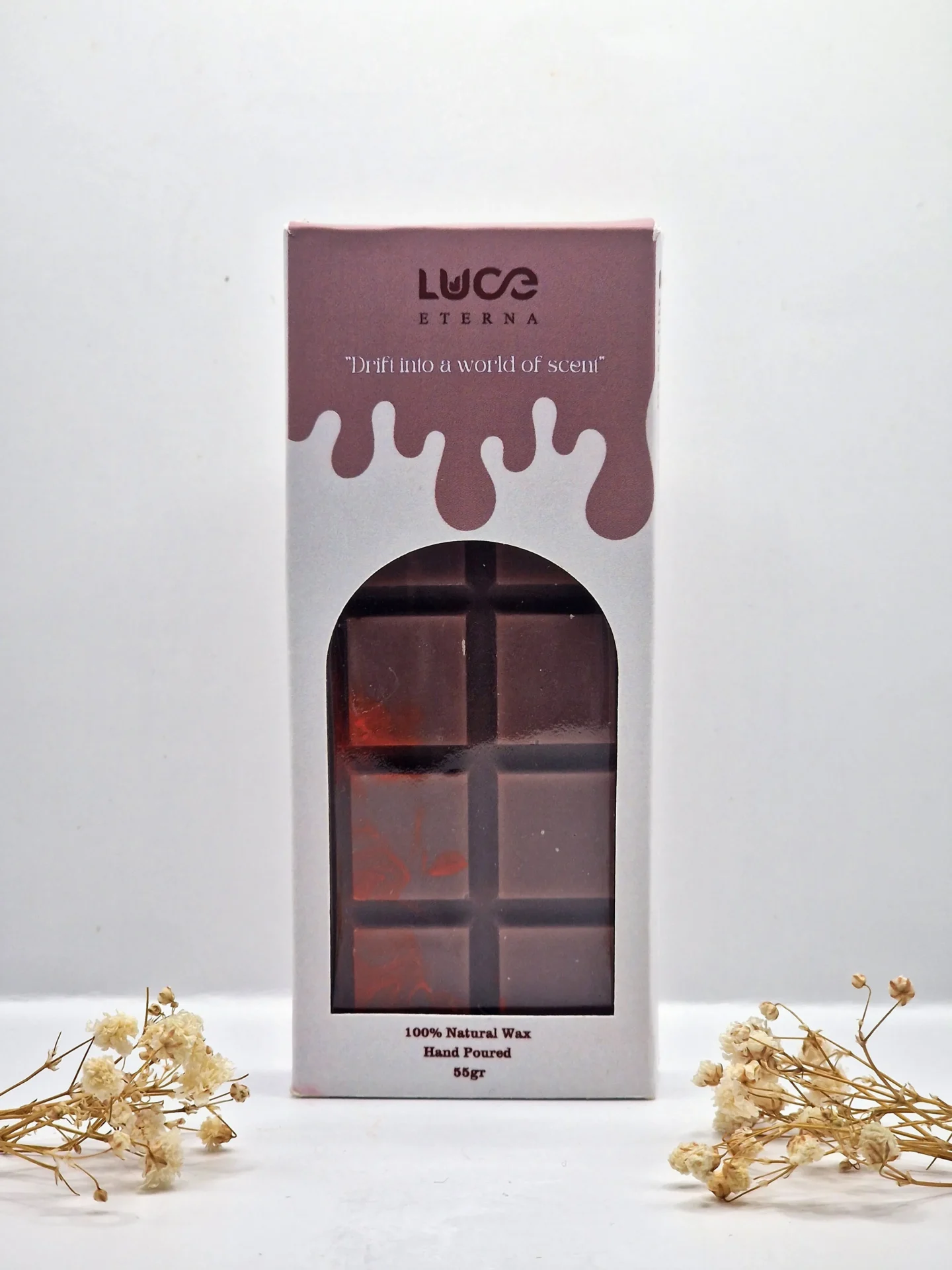 Η Choco Salted Caramel Wax Melt Bar αγκαλιάζει τον χώρο με το πλούσιο, gourmet άρωμά της.