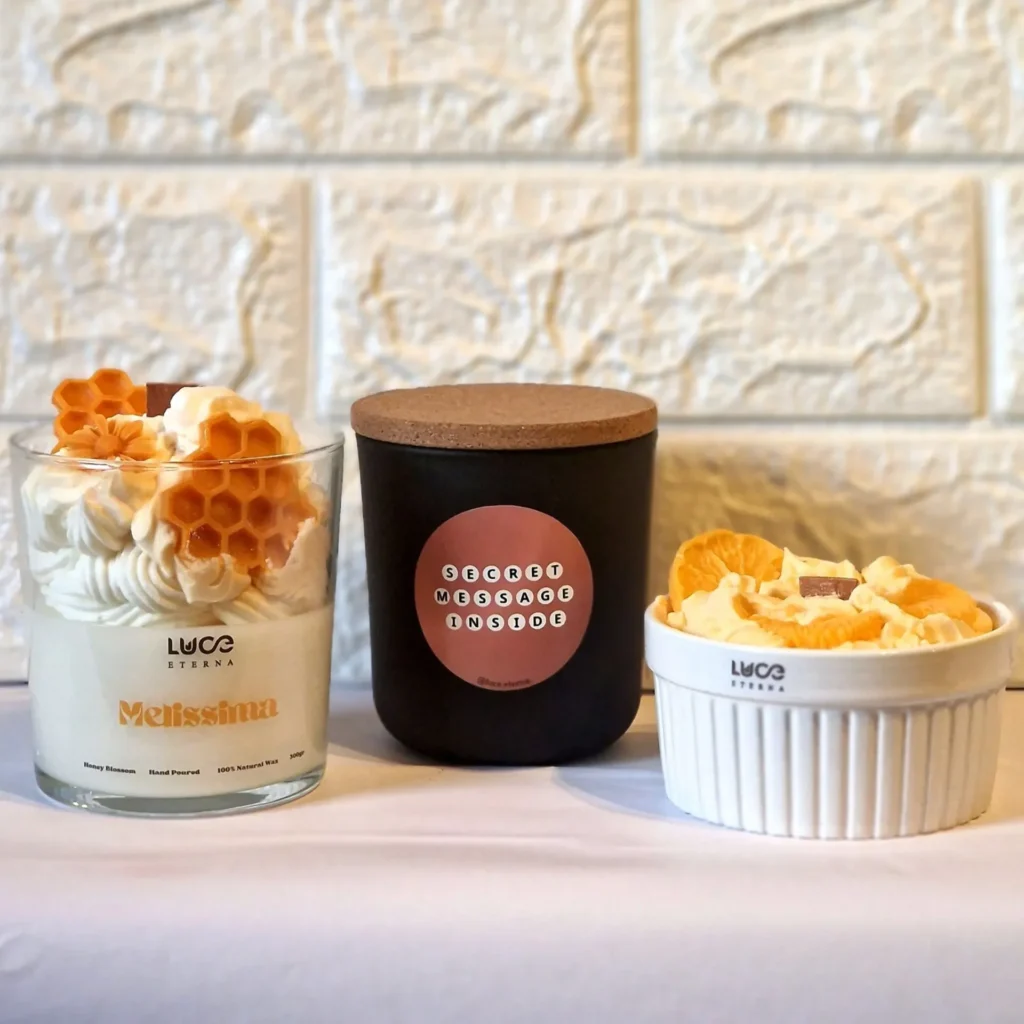 Η Luce Eterna σας προσκαλεί να δημιουργήσετε την ιδανική ατμόσφαιρα στον χώρο σας. Χαλαρωτική, αναζωογονητική ή γλυκά νοσταλγική — όποια κι αν είναι η επιθυμία σας, υπάρχει ένα wax melt που θα την εκφράσει.